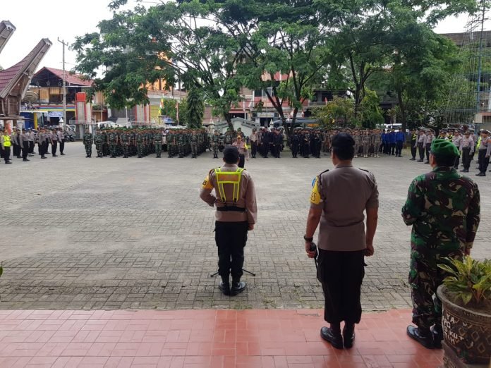 rantepaopos.id-Toraja Utara,– 500 personil Polres Tana Toraja, 150 personil Kodim 1414 Tana Toraja ditambah 30 personil Brimob gelar apel pasukan di halaman Badan Pekerja Sinode (BPS) Gereja Toraja di Rantepao, Senin sore (31/12/2018) untuk persiapan pengamanan malam pergantian tahun di dua Kabupaten, yakni Tana Toraja dan Toraja Utara.