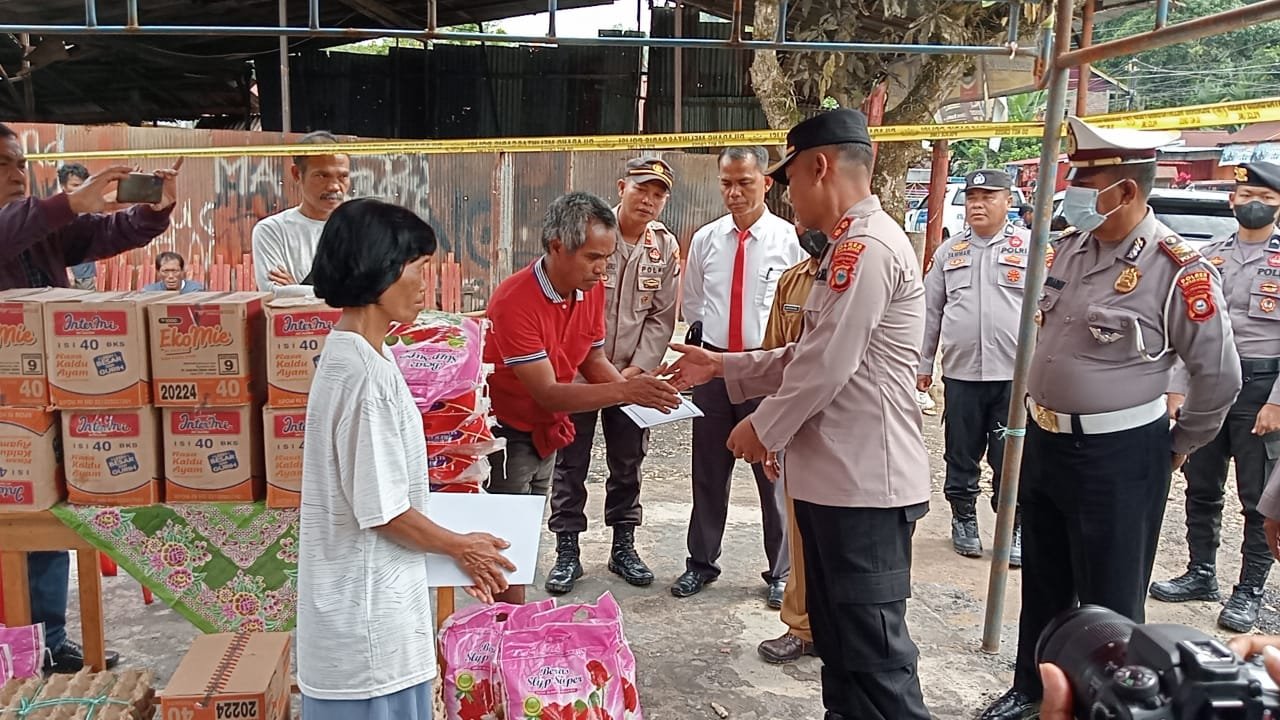Kepada Korban kebakaran, Kapolres menyampaikan rasa turut prihatin atas musibah kebakaran yang terjadi, dengan harapan Korban yang kiosnya ataupun warungnya hangus terbakar, agar tetap tabah dan bersabar.