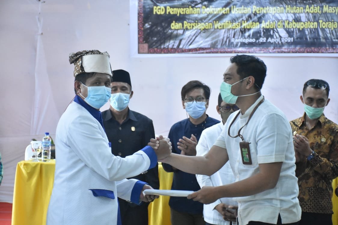 Asisten I Bidang Pemerintahan, Samuel Samperompon, menjelaskjan, Minggu (25/4) menyebutkan,  penyerahan dokumen pengajuan Hutan Adat ini merupakan tindak lanjut dari Perda No.1 Tahun 2019 tentang Pengakuan dan Perlindungan Masyarakat Adat di Kabupaten Toraja Utara.