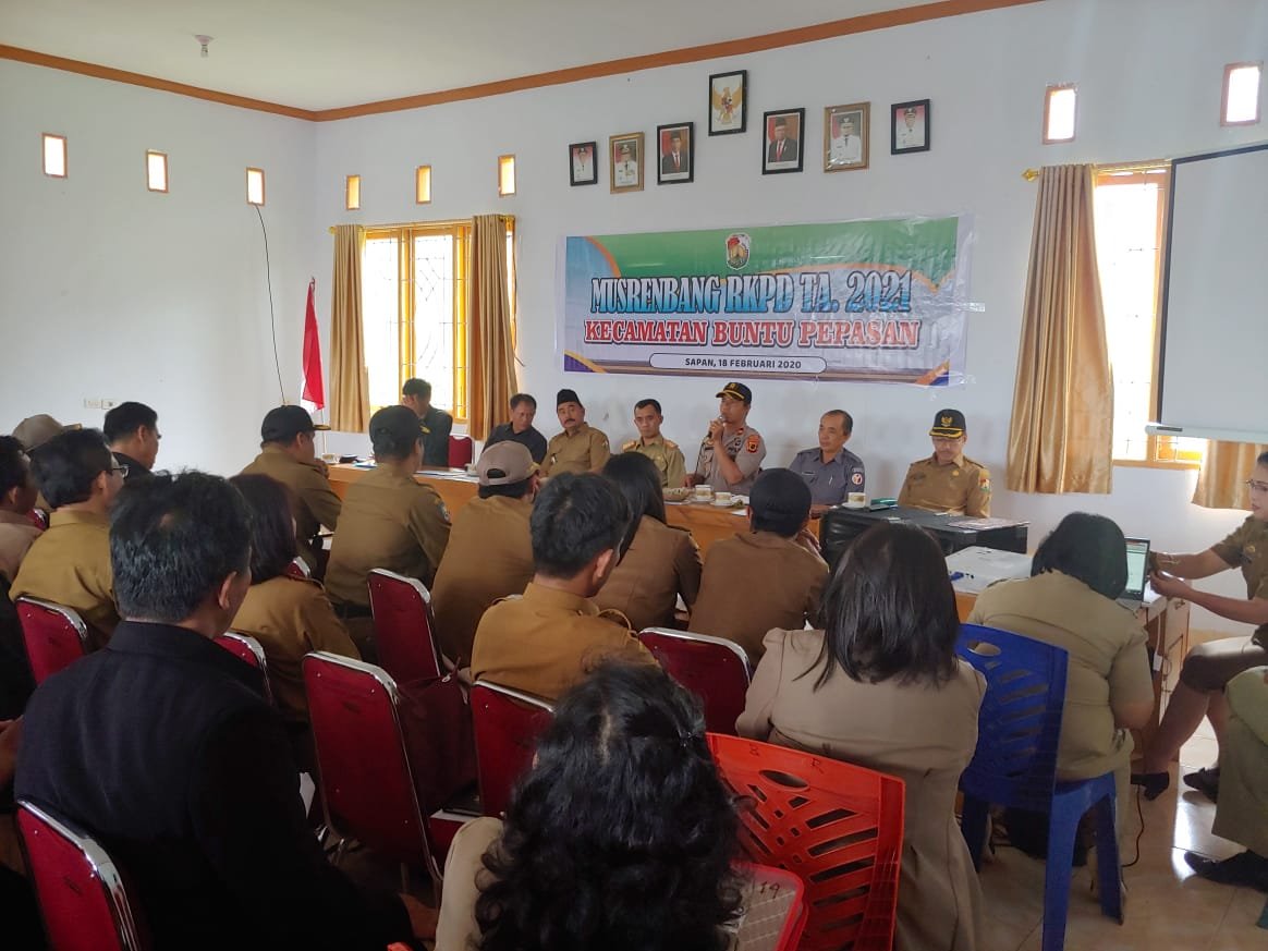 TORAYAPOS.COM-TORAJA UTARA,–Musyawaran Perencanaan Pembangunan (Musrenbang) Rencana Kerja Pembangunan Daerah (RKPD) TA. 2021, Kecamatan Buntu Pepasan silaksanakan didi Kantor Kecamatan, Selasa (18/2/2020).