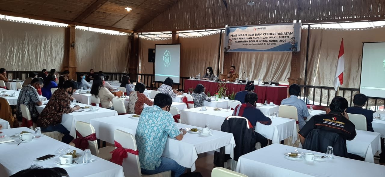 Torayapos.com-Toraja Utara- Badan Pengawas Pemilu (BAWASLU) Kabupaten Toraja Utara gelar bimbingan teknis (Bimtek) pembinaan SDM dan Kesekretariatan Pada Pemilihan Bupati dan Wakil Bupati Kabupaten Toraja Utara Tahun 2020.
