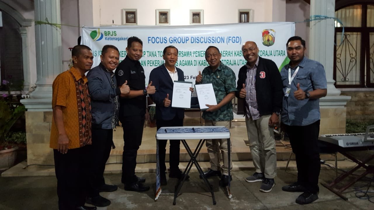 rantepaopos.id-Toraja Utara- BPJS  Ketenagakerjaan teken MoU dengan Pemerintah Daerah Kabupaten Toraja Utara terkait kesepakatan pekerja lintas agama di Kabupaten Toraja Utara Tahun 2019, Kamis (21/2/2019).
