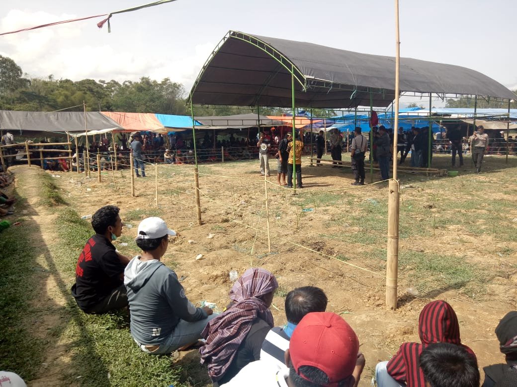 Saat personil gabungan Polres Tana Toraja  dan Polsek Tondon Nanggala lakukan pembubaran judi sabung ayam yang berlangsung di Lembang Tondon Siba'ta Kecamatan Tondon Kabupaten Toraja Utara. Minggu (1/12/2019), sekitar pukul 12.00 wita.