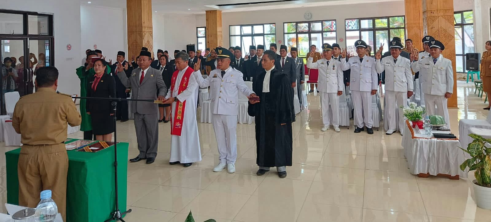 Suasana pelantikan para pejabat administrator dan pejabat pengawas di Lingkup Pemerintahn Kabupaten Toraja Utara yang dilantik langsung oleh Bupati Toraja Utara, Senin, 4 September 2023 bertempat di Ruang Pola Kantor Bupatai, Marante.