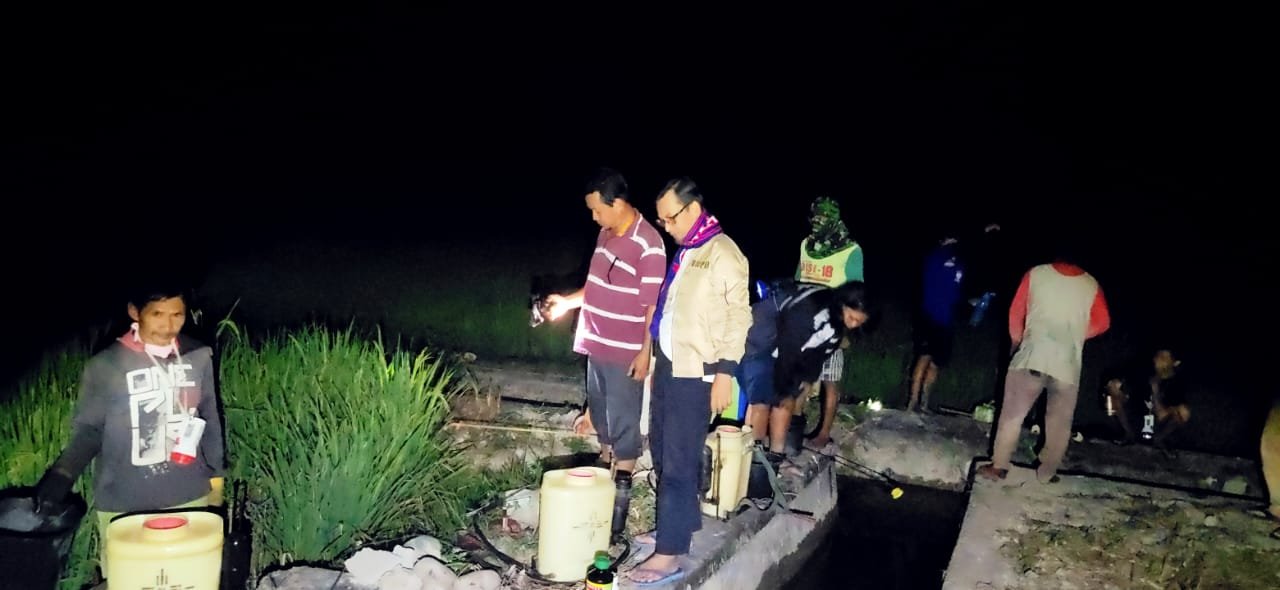 Ikut menyemprot malam tadi, selain Kadis DKP juga Kepala Desa Buntu Terpedo Jamaluddin, Kepala Dusun serta Kelompok Tani setempat..