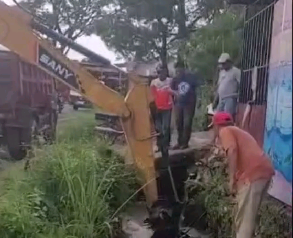 Dua hari sebelumnya Satpol PP sudah mulai kerja untuk penertiban bangunan yang berada di atas trotoar atau drainase. Sementara Dinas Pekerjaan Umum dan Penataan Ruang (PUPR) hari ini, Jumat (25/4/2025) juga melakasnakan tugas pekerjaannya yaitu menormalisasi drainase.