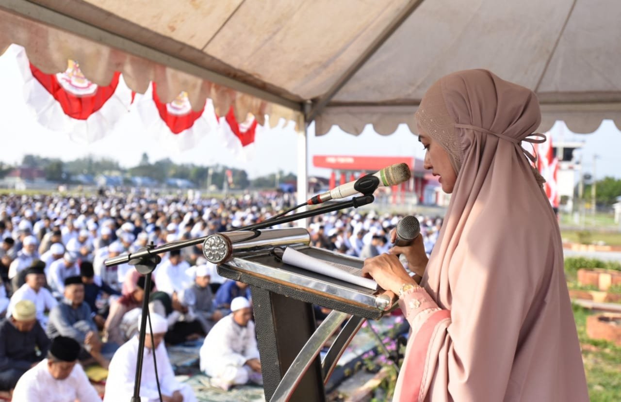 RANTEPAOPOS.ID-LUTRA,– Bupati Luwu Utara Indah Putri Indriani bersama unsur Forkopimda dan masyarakat laksanakan salat Idul Adha 1440 Hijriah, di landasan pacu Bandar Udara Andi Jemma Masamba, Minggu (11/8/2019).