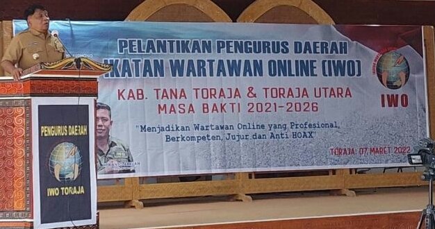 Hal itu disampaikan Bupati Tana Toraja, Theofilus Allorerung dalam pelantikan pengurus Ikatan Wartawan Online (IWO) Toraja Raya, Senin, 7 Maret 2022, di Makale, Tana Toraja.