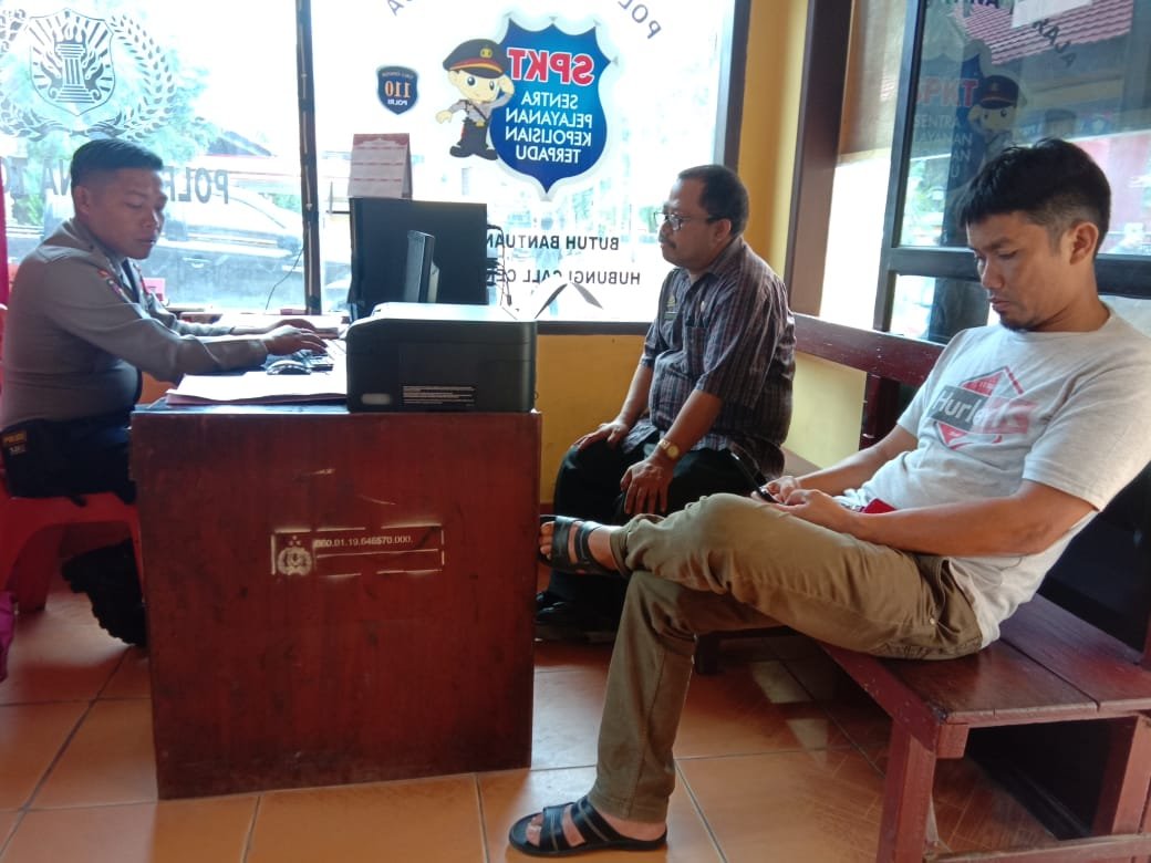 Nampak Paulus Palembang sedang memberikan keterangan laporan pencurian yang dialami Dinas Pertanian Tana Toraja kepada Polres Tana Toraja, Kamis (14/3/2019)