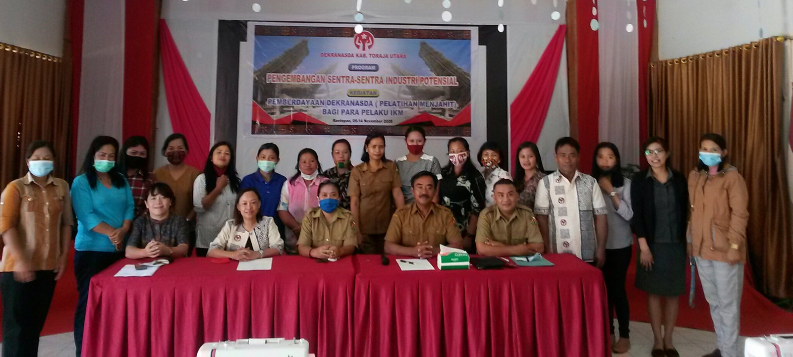 Torayapos.com-Toraja Utara,–Dinas Perindustrian, Koperasi dan UMKM pada Bidang Perindustrian melalui program pemberdayaan Dewan Kerajinan Nasional Daerah (Dekranasda) Kabupaten Toraja Utara laksanakan kegiatan pelatihan lanjutan menjahit dari Tanggal 9-14 November 2020, bertempat di Aula Gereja Toraja Rantepao.