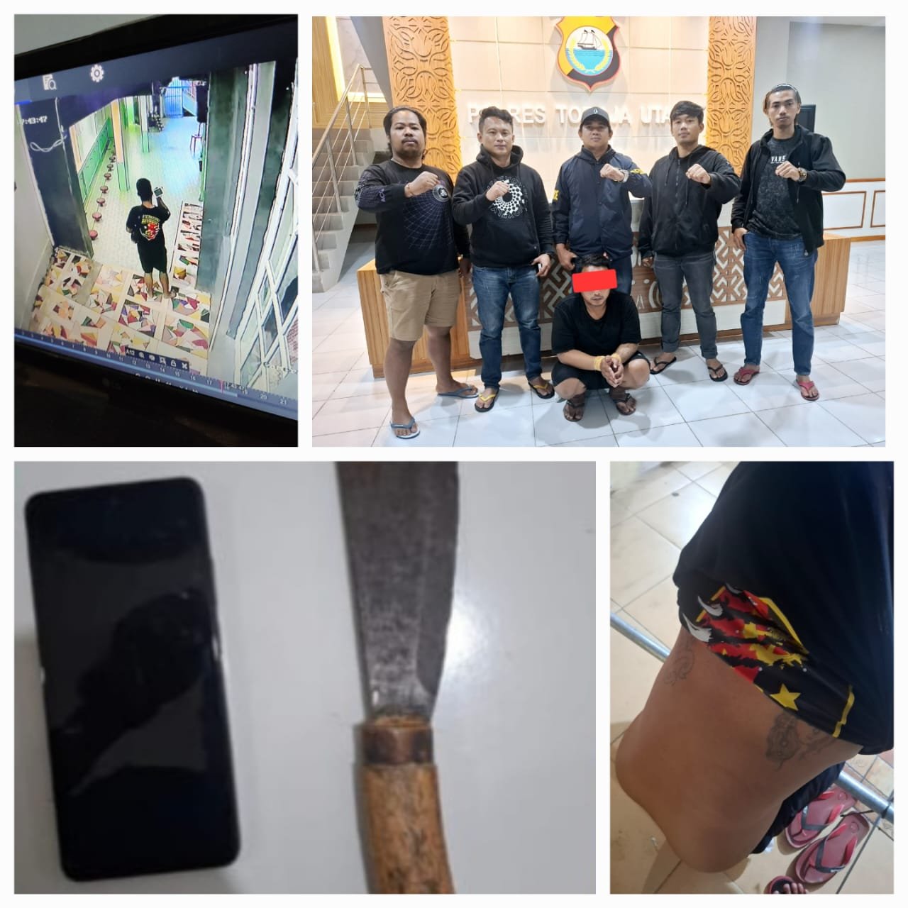 Dalam rekaman CCTV terduga pelaku mengenakan baju kaos warna hitam bergambar dan bertuliskan “Bareskrim”. Ia pun akhirnya berhasil diamankan sekitar 4 jam setelah kejadian saat telah berada di wilayah Makale, kabupaten Tana Toraja.