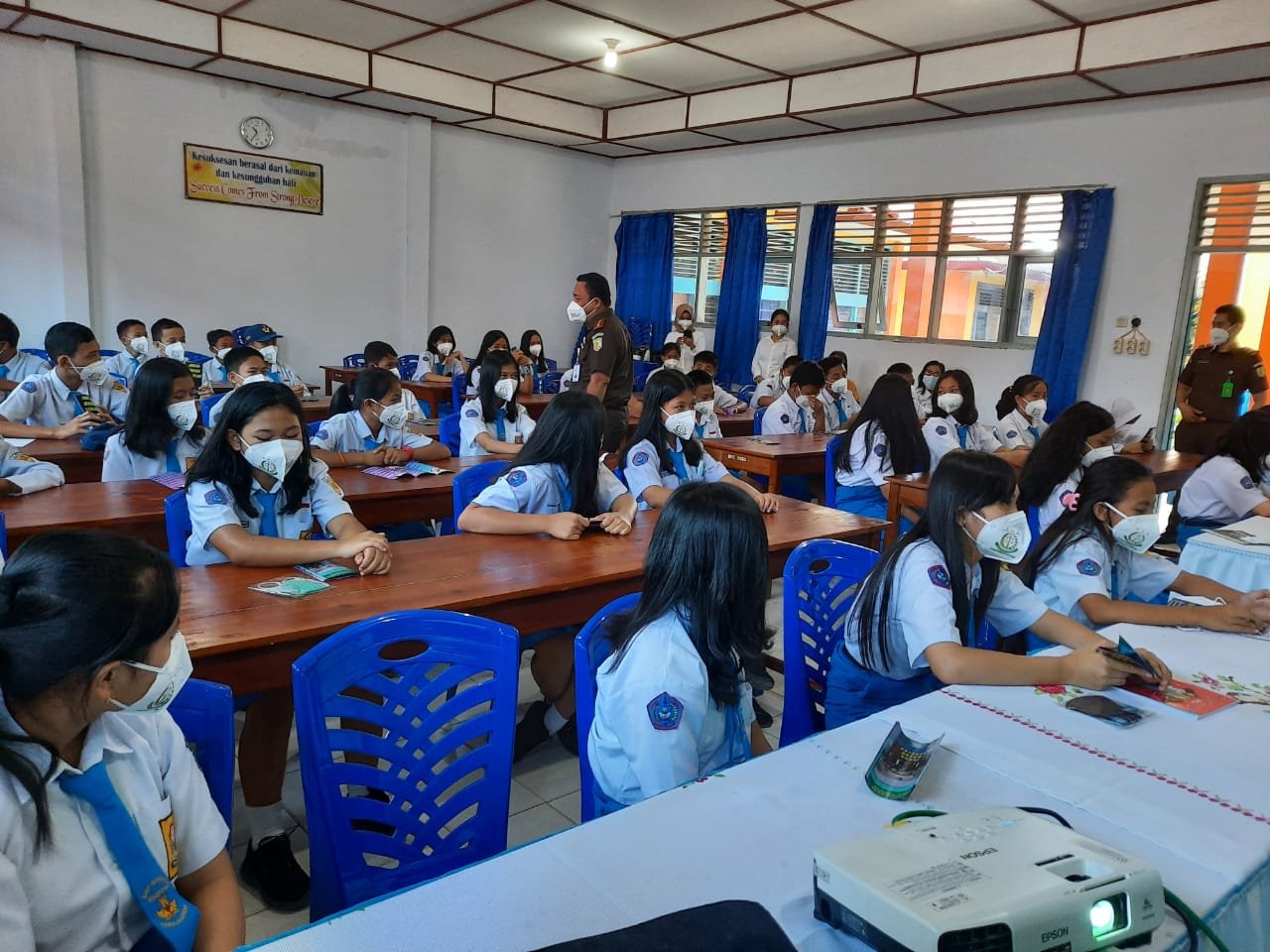 Seperti pada hari, Rabu (24/3), program ini masuk di SMPN 2 Rantepao, Kabupaten Toraja Utara, dengan cara mengumpulkan siswa dalam ruangan kelas belajar dan diberikan sosialisasi hukum, serta cara menjaga moralitas yang semestinya sebagai pedoman hidup agar tidak terjerat hukum atau tindakan amoral.