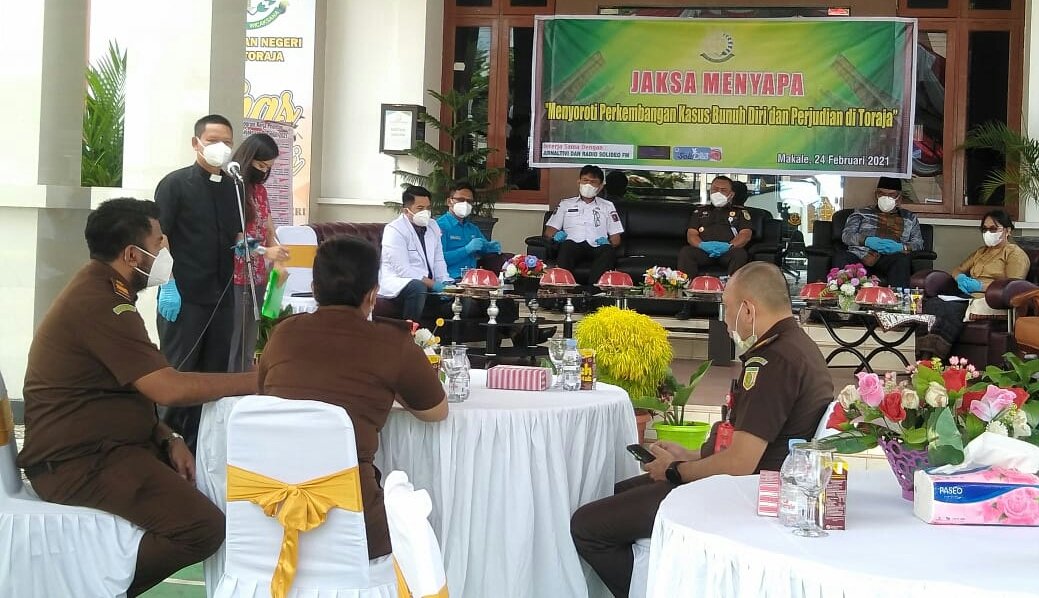 Torayapos.co.id-Tana Toraja,– Menyoroti perkembangan kasus bunuh diri dan perjudian di Toraja, pihak Kejaksaan Negeri Tana Toraja gelar program Jaksa Menyapa di Kantor Kejaksaan Negeri Tana Toraja, Makale, Kabupaten Tana Toraja, Rabu (24/2/2021).