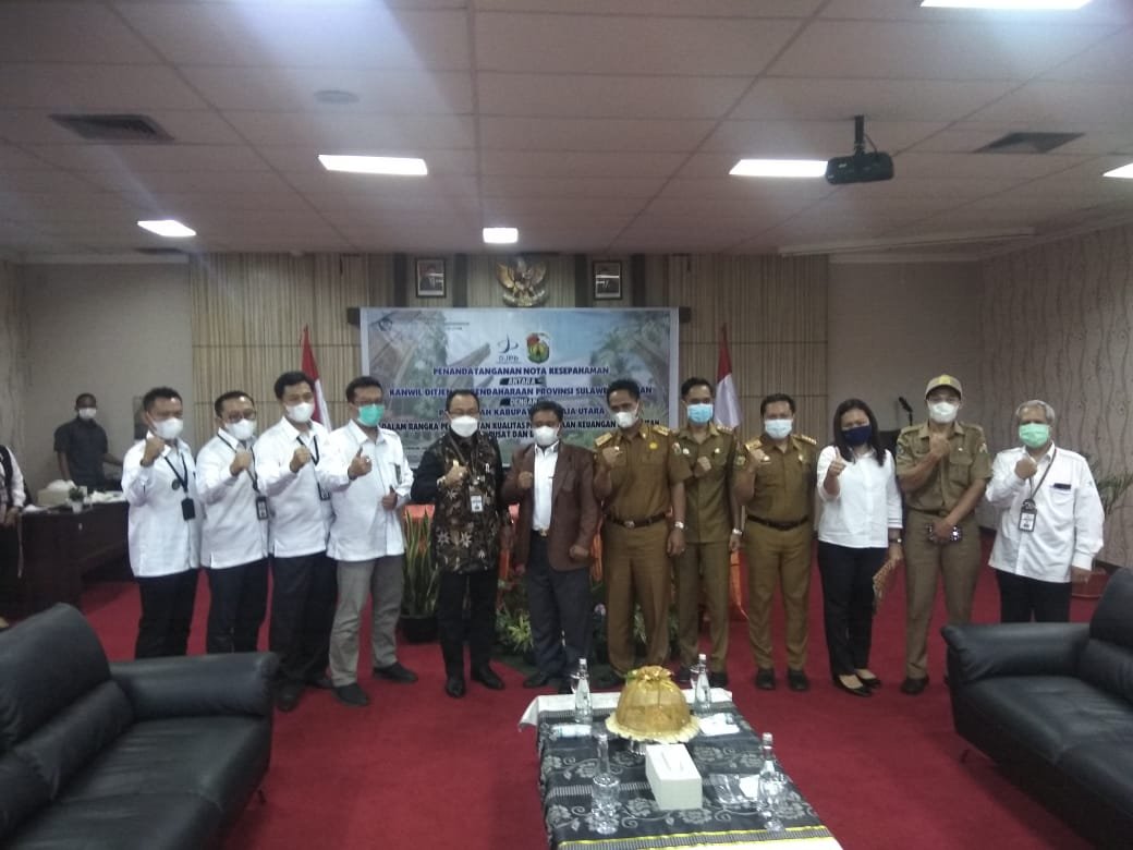 Foto bersama: Usai kegiatan penandatangan nota kesepahaman (MoU) antara Pemkab Toraja Utara dengan Kanwil Ditjen Perbendaharaan Provinsi Sulsel di Makassar, Senin (24/5/2021).