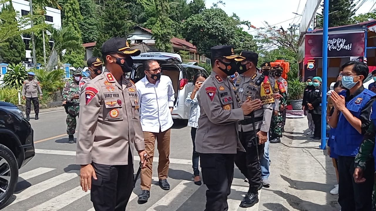 Usai berkunjung di Posko Mobile Covid dan Pos Terpadu Ops Lilin 2020 Polres Tana Toraja, Kapolda Sulsel melanjutkan kegiatan dengan melakukan kunjungan ke Kab. Toraja Utara. (Sumber: Humas Polres Tana Toraja)