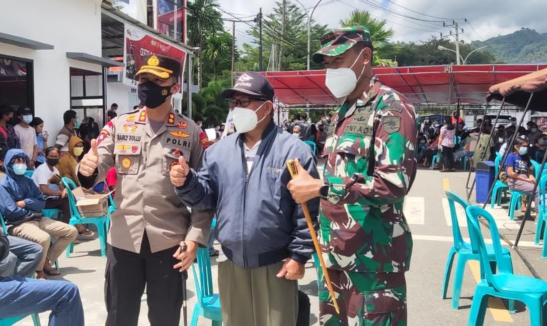 Torayapos.co.id-Tana Toraja — Kapolres Tana Toraja didampingi Kabag Ops, Para Kasat Bersama Dandin 1414 / Tator dan Kadinkes beserta Staf, Tim Nakes Kabupaten Tana Toraja meninjau langsung pelaksanaan Gebyar Vaksin Gotong Royong yang digelar secara serentak di tujuh lokasi, Kamis, (2/9/21)