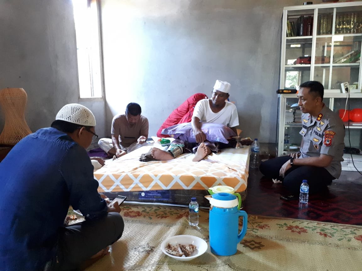 Suasana saat Kapolres Luwu Utara AKBP Agung Danargito didampingi Kasubag Humas Polres Lutra, Ipda Abd Latief ketika menjenguk Ustadz Mahrus yang terbaring di rumahnya karena kecelakaan dan menyebabkan patah kaki, Jumat, (27/12)