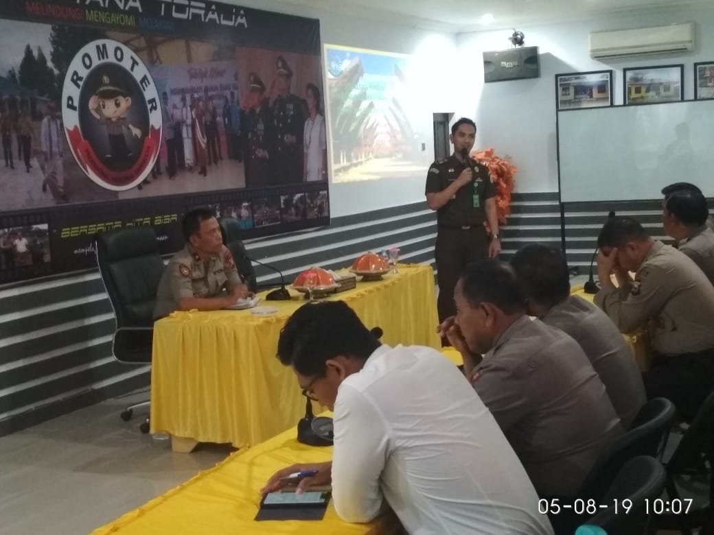 Undangan tersebut direspon positif pihak Kejaksaan Negeri Tana Toraja. Dalam pertemuan awal ini Kapolres Tator menghadirkan Kasi Intel Kejari Andi Ardi Aman SH bersama 1 orang stafnya untuk hadir dalam rapat rutin bulanan Bhabinkamtibmas.