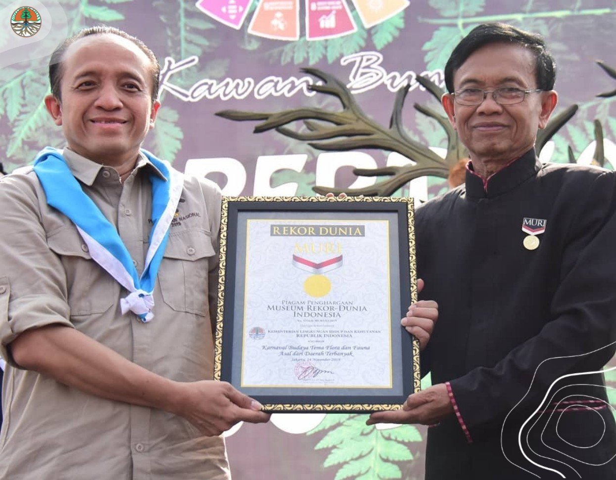 RANTEPAPOS.ID-JAKARTA -Kementerian Lingkungan Hidup dan Kehutanan dan Kwarnas Gerakan Pramuka meraih penghargaan dari Museum Rekor Dunia Indonesia (MURI) atas pertunjukkan karnaval budaya yang menampilkan kostum flora dan fauna berbahan dari limbah.