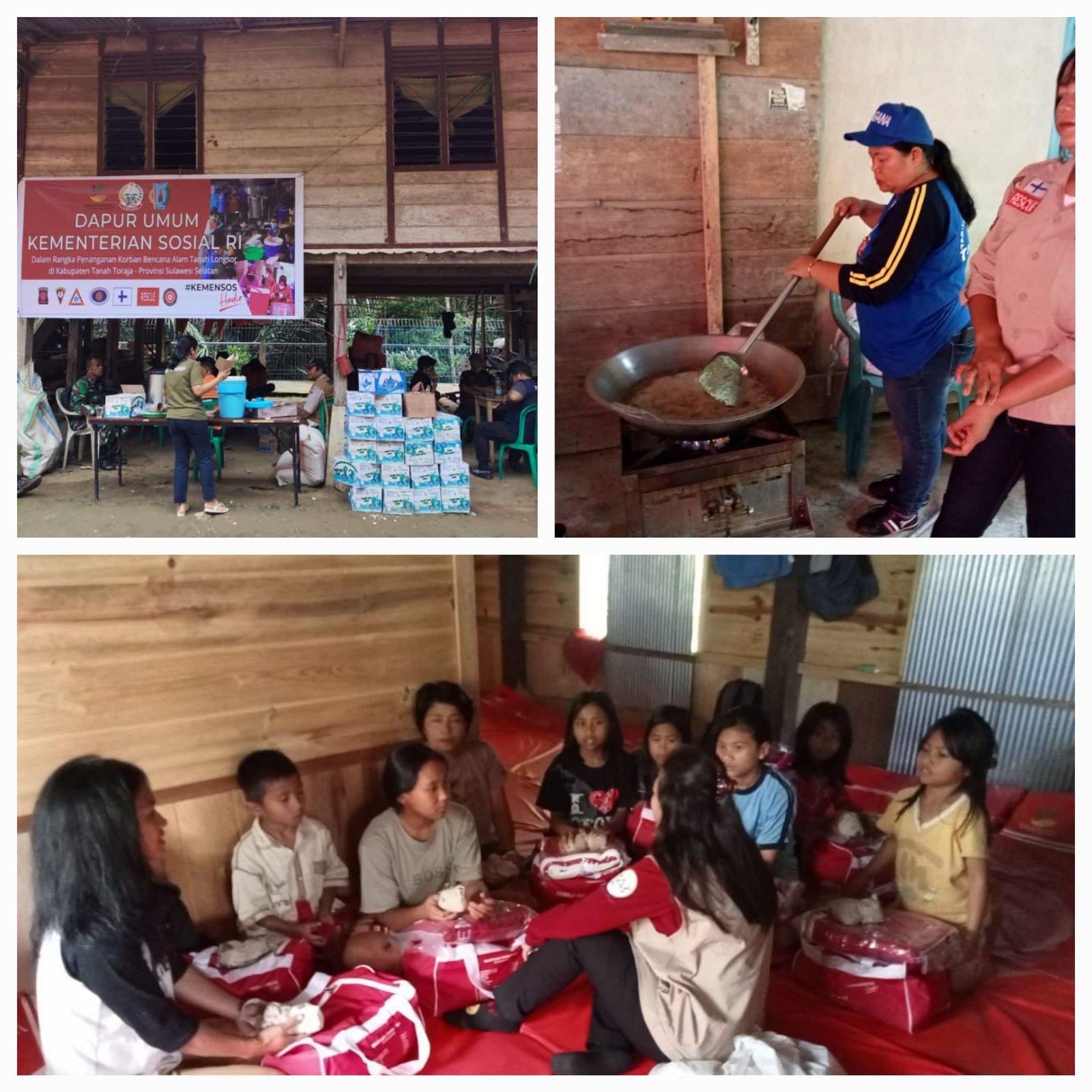 Torayapos.co.id-Tana Toraja,– Merespon kejadian bencana tanah longsor di dua lokasi di Kabupaten Tana Toraja, Sulawesi Selatan pada Sabtu (13/4) lalu, Kementerian Sosial sudah mendirikan dapur umum untuk memenuhi kebutuhan para pengungsi sejak Minggu (14/4). Dapur Umum itu, memproduksi 1.200 nasi bungkus setiap hari yang terbagi dalam tiga kali pendistribusian.