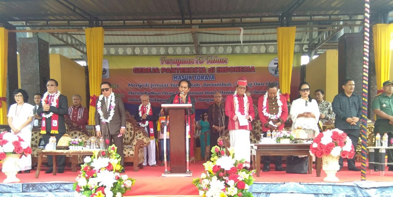 RANTEPAOPOS.ID-TORAJA UTARA,- Perayaan 70 Tahun Gereja Pantekosta di Indonesia (GPdI) masuk Toraja yang dipusatkan di Lapanganm Bakti Rantepao, berjalan sukses dan lancar, Kamis (3/10/2019), yang dihadiri langsung oleh pimpinan Majelis Pusat GPDI dan Ketua Majelis Darah GPdI Sulsel.