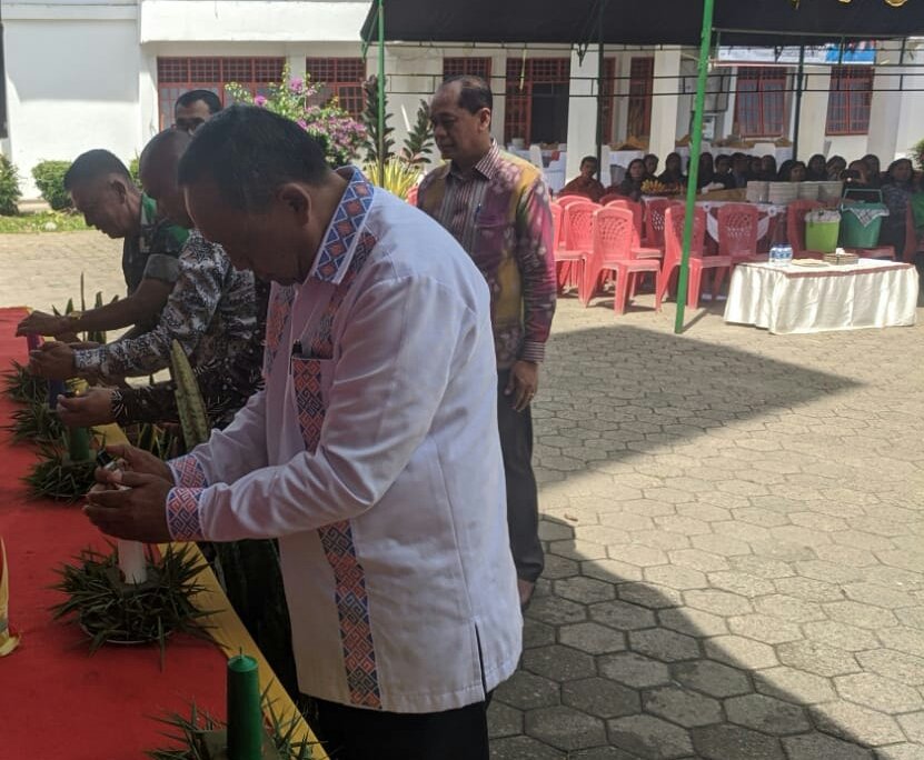 Nampak bupati Kalatiku Paembonan menyalakan lilin dalam kegiatan perayaan natal oikumene yang digelar oleh Pemerintah Kabupaten Toraja Utara, Kamis (26/12)
