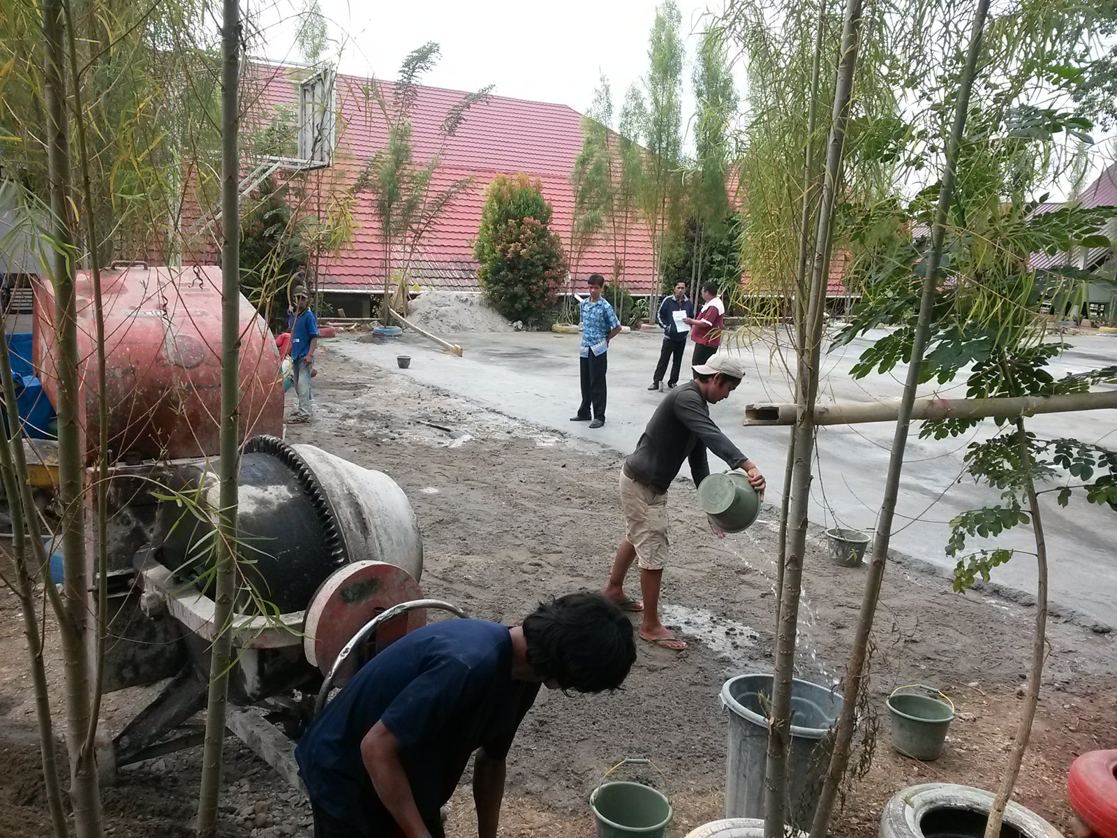Menariknya, dalam pengerjaan pengecoran halaman sekolah ini, pihak sekolah kembali berdayakan masyarakat sebagai pekerja.
