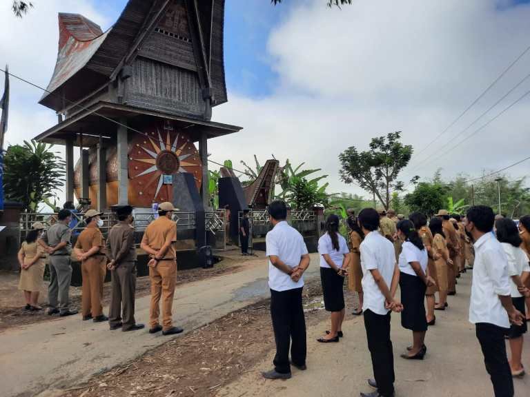 Dalam ziarah tersebut, diawali dengan upacara penghormatan yang dipimpin Wakil Ketua DPRD Torut, Calviyn P. Tondok yang hadir sebagai pembina upacara dilanjutkan dengan tabur bunga.