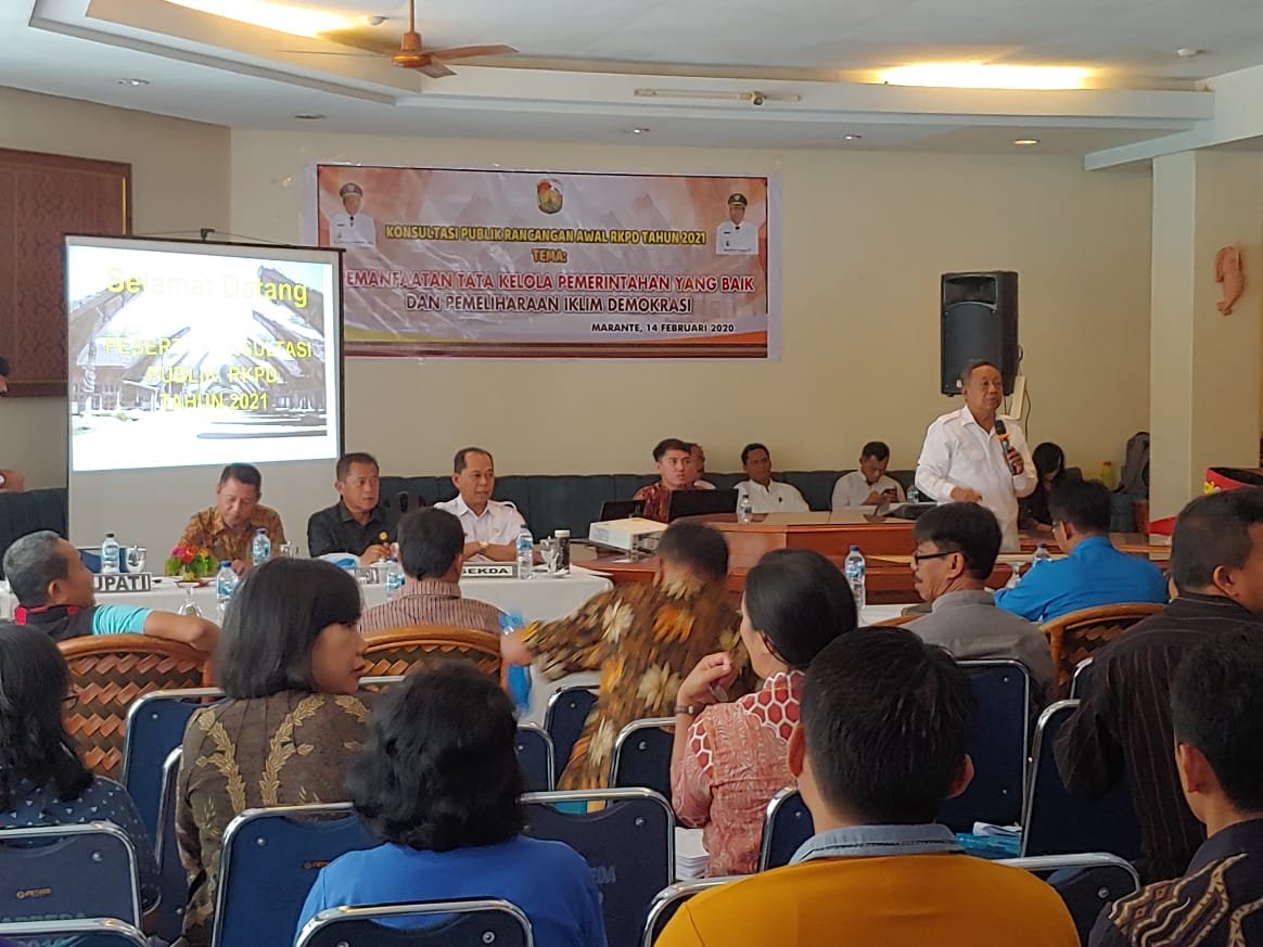TORAYAPOS.COM-TORAJA UTARA,–Badan Perencanaan Pembangunan Daerah (BAPPEDA) Kabupaten Toraja Utara laksanakan konsultasi publik Rencana Kerja Pembangunan Daerah (RKPD) Tahun 2021, di Hotel Marante, Jumat (14/2/2020).