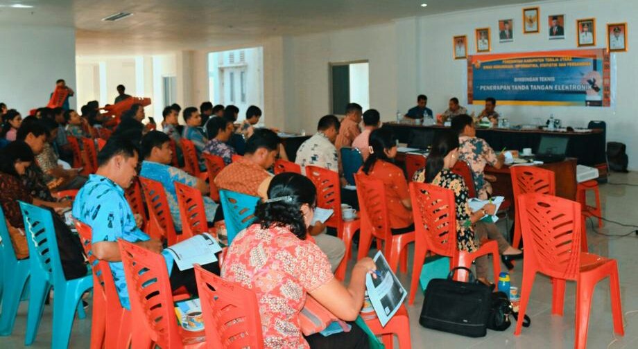 Pemerintah Kabupaten Toraja Utara, melalui Dinas Komunikasi, Informatika, Statistik dan Persandian kerjasama BPPT solud smart speed adakan Bimbingan Teknis Penerapan Tandatangan Elektronik, Kamis (14/11/2019).
