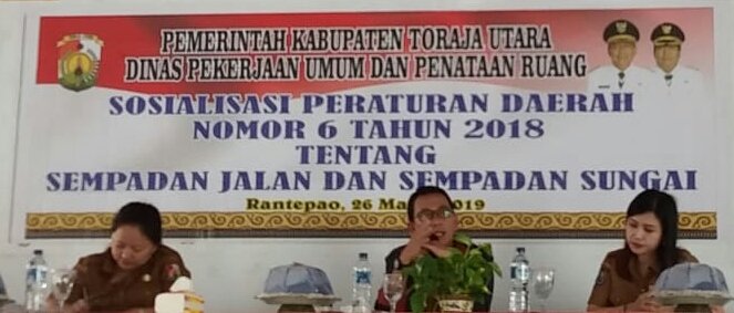 Seperti pada Selasa (26/3/2019) sosialisasi Perda itu dilaksanakan di Aula Kantor Kecamatan Rantepao yang dipimpin langsung Kadis PUPR Kabupaten Toraja Utara Yorry R. Lesawengen, AP didampingi Sekcam Rantepao Marnaek Bara Allo.