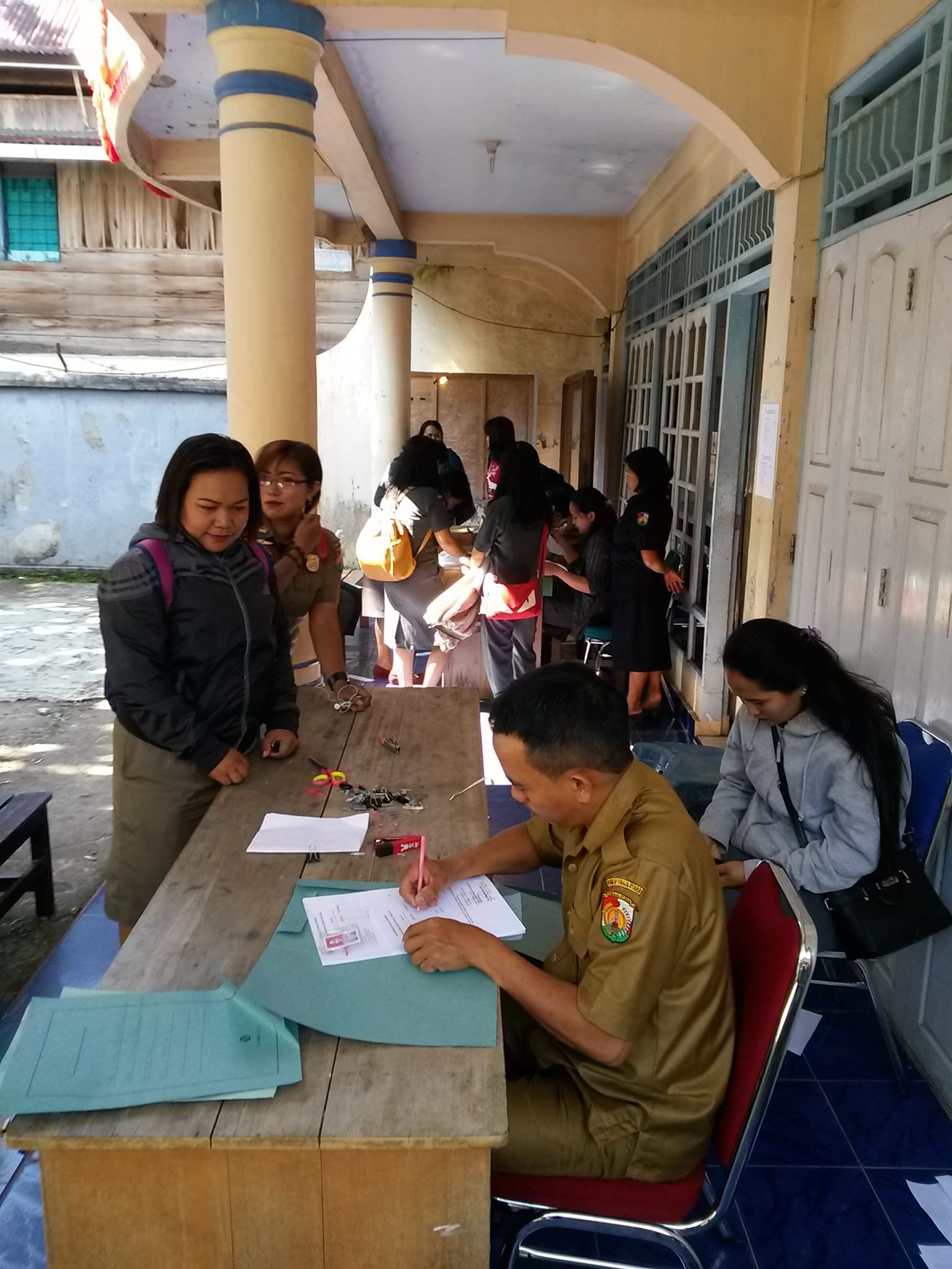 Nampak sejumlah pegawai BKPP Torut disibukkan dengan kedatangan PHT tersebut dengan membawa SK Tahun 2019, KTP dan ijazah terkahir.