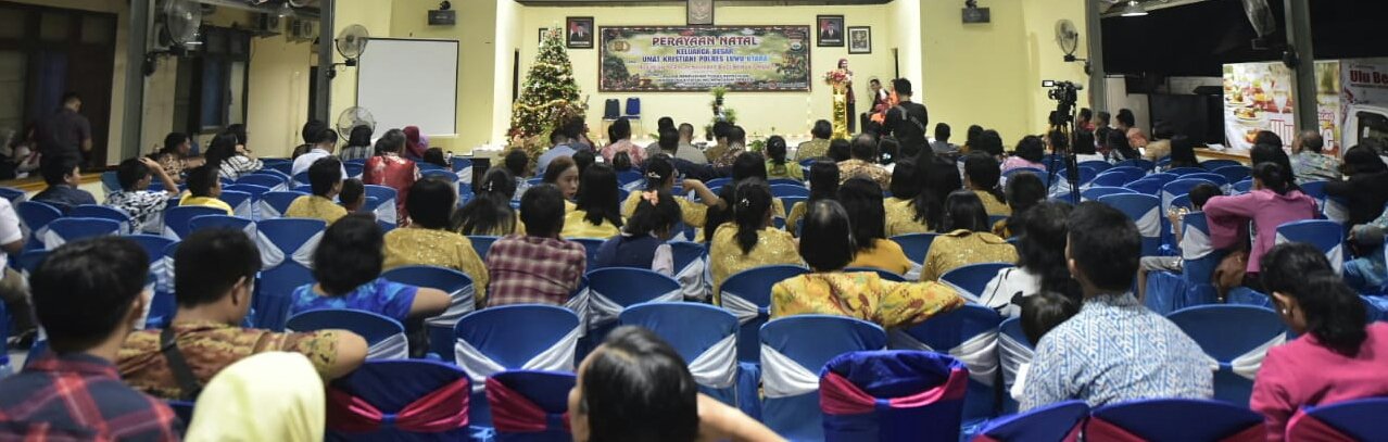 RANTEPAOPOS.ID-LUWU UTARA,— Berjalan penuh khidmat perayaan Natal Polres Luwu Utara yang diadakan di Aula Polres Lutra, Sabtu (21/12).