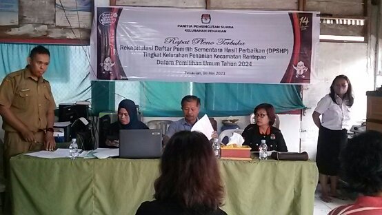 Torayapos.co.id-Toraja Utara,– Panitia Pemungutan Suara (PPS) Kelurahan Penanian, Kecamatan Rantepao, Toraja Utara tetapkan 1.106 pemilih aktif, pemilih baru Nol dan 3 pemilih tidak memenuhi syarat atau TMS.