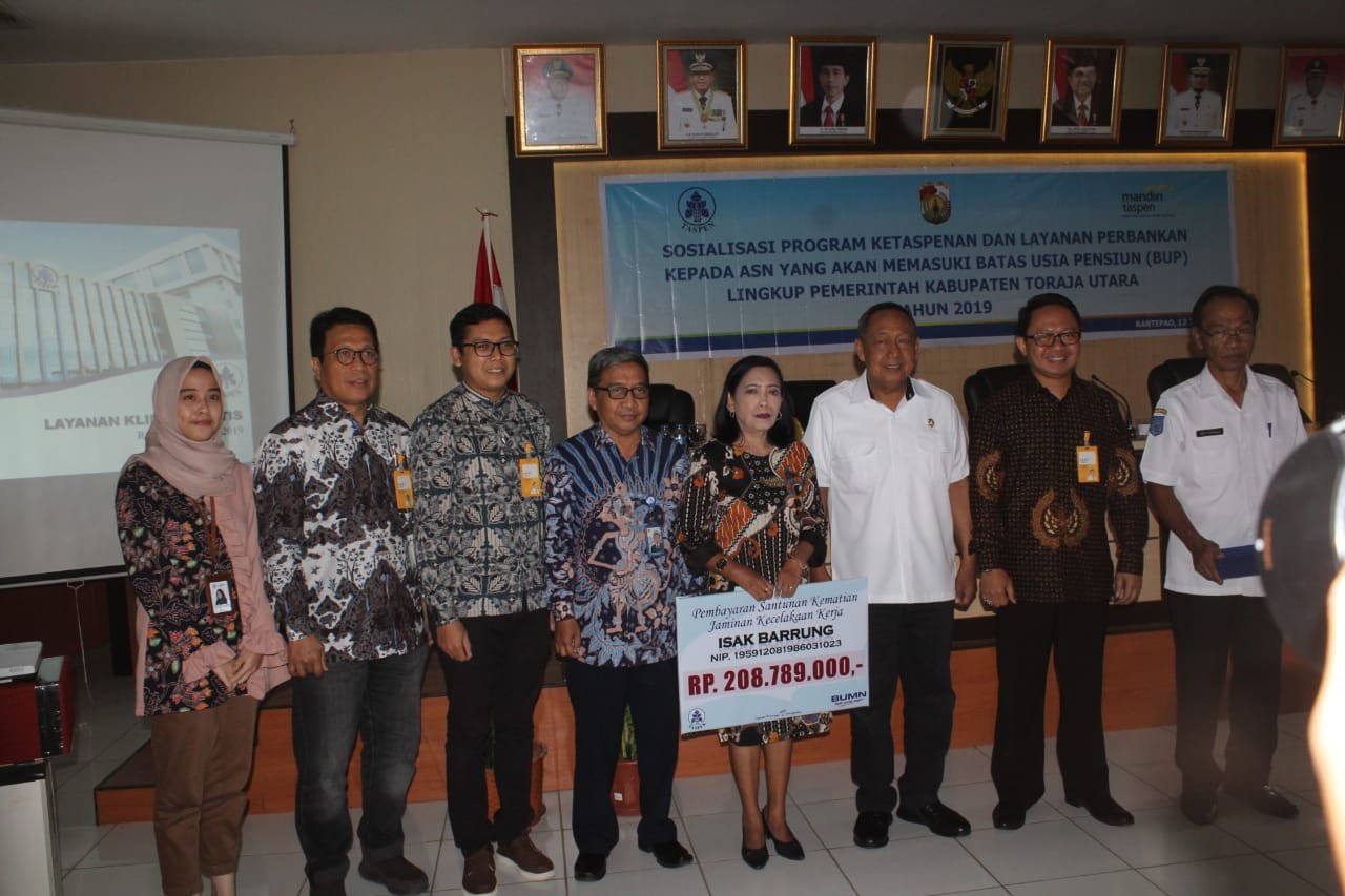 RANTEPAOPOS.ID-TORAJA UTARA.– Badan Kepegawaian Pendidikan dan Pelatihan (BKPP) Toraja Utara gelar Sosialisasi Program Ketaspenan dan Layanan Perbankan Kepada ASN yang mamasuki batas usia pensiun (BUP) di Lingkup Pemerintah Kabupaten Toraja Utara Tahun 2019, di ruang Pola Kantor Bupati Toraja Utara, Rabu (12/6/2019).