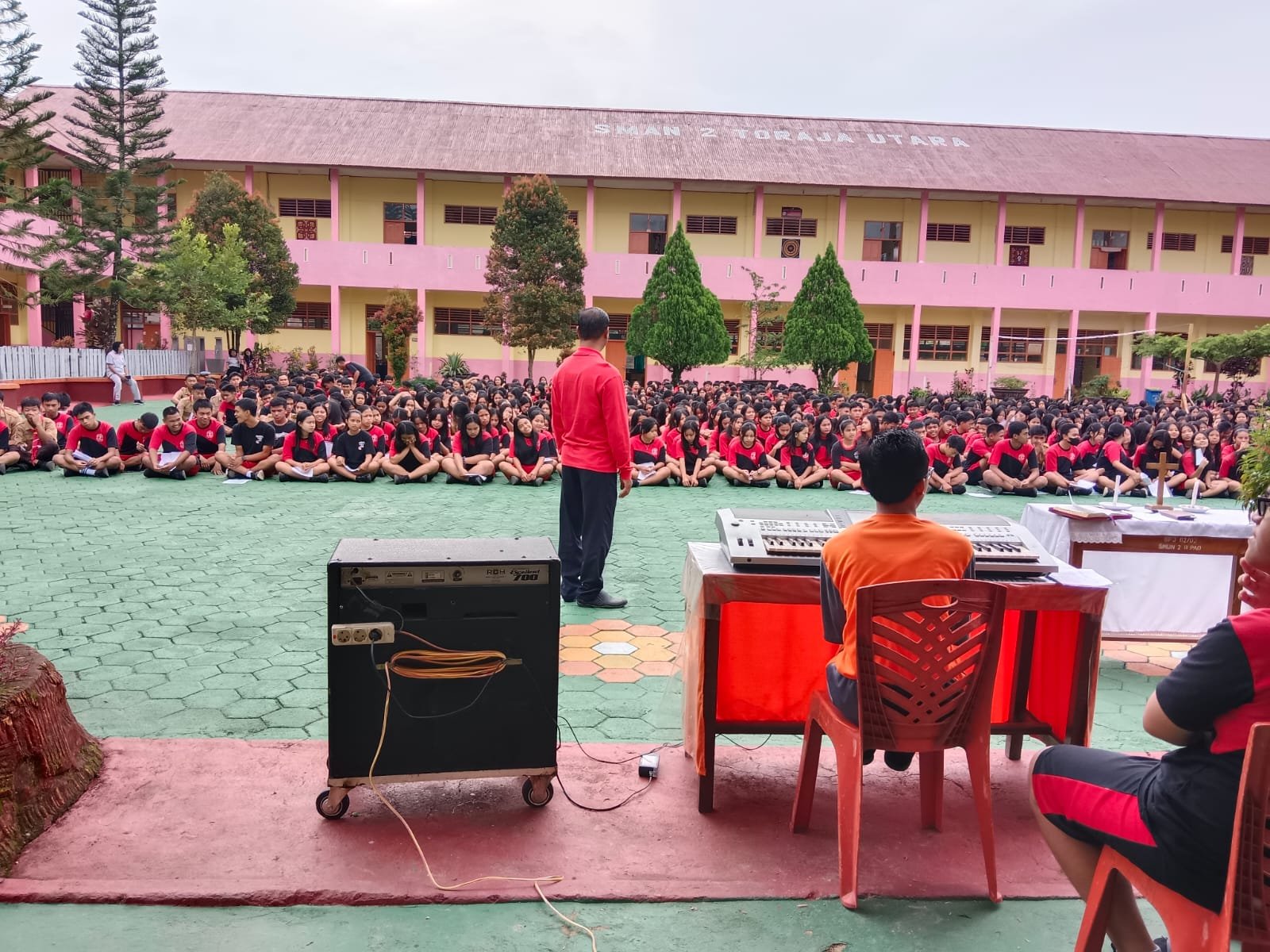 Momentum ini SMAN 2 Toraja Utara juga memaknai dan mewujudkan dalam ibadah bersama merayakan  Hari Valentine atau Valintine’s Day dengan menyayikan lagu-lagu rohani yang bertemakan cinta dan kasih sayang.