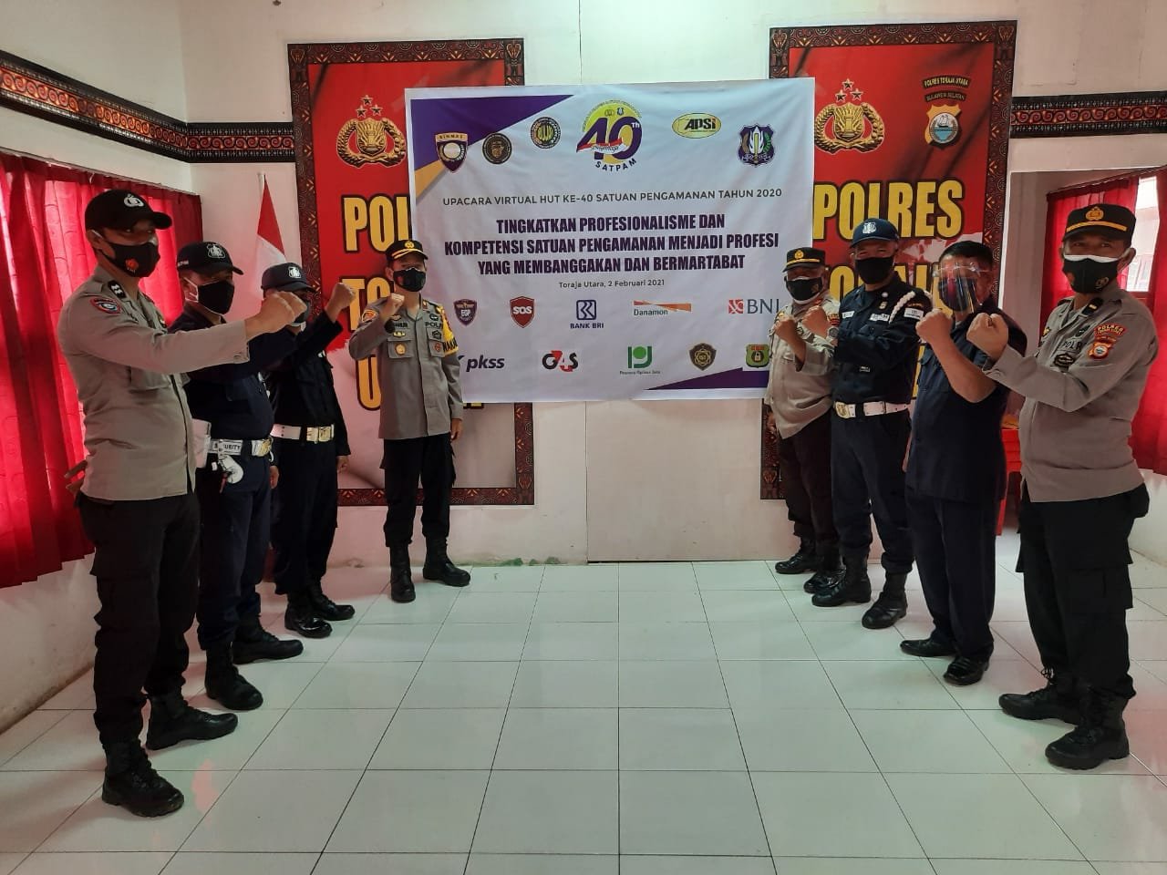 Dengan menerapkan protokol kesehatan, upacara diikuti oleh sejumlah satpam di Kabupaten Toraja Utara, dengan mengangkat tema “Tingkatkan Profesionalisme dan Kompetensi Satuan Pengamanan Menjadi Profesi Yang Membanggakan dan Bermartabat”