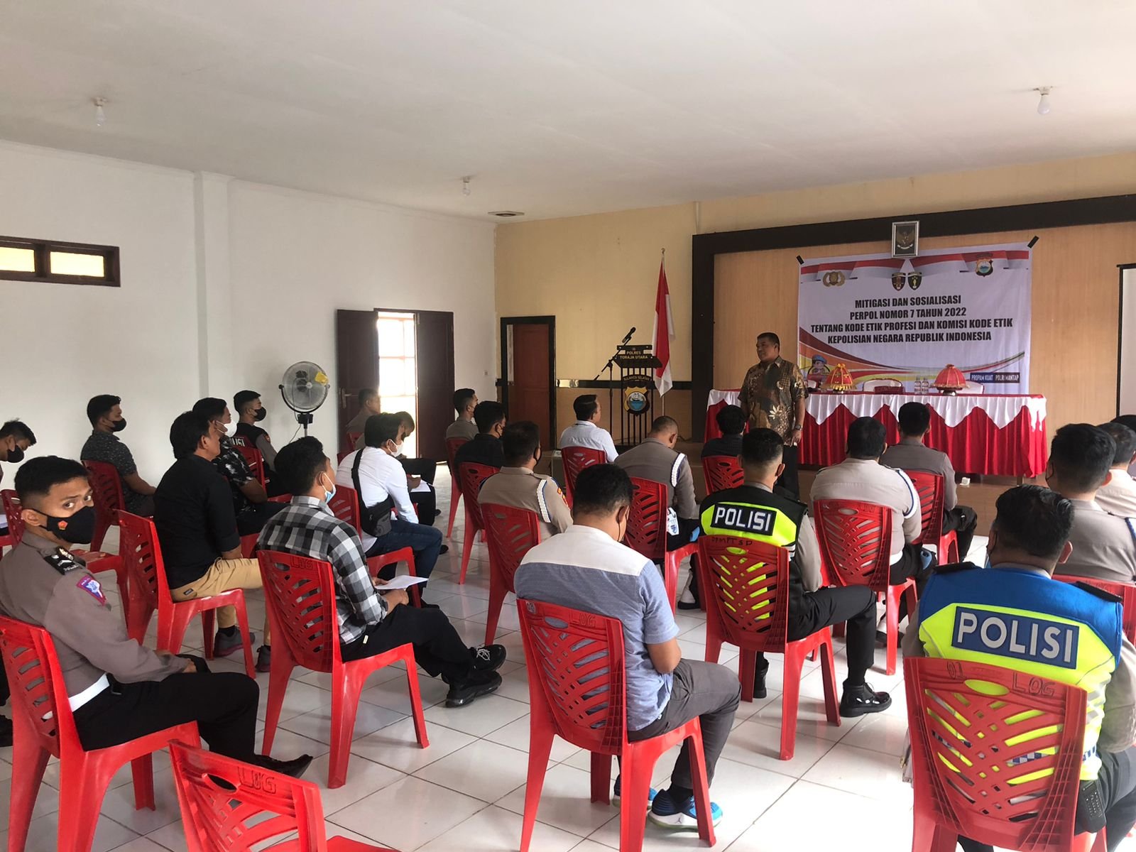Perpol nomor 7 tahun 2022 tentang kode etik Polri dan Komisi Kode Etik Polri berisikan tentang kewajiban dan larangan sesuai dengan etika kenegaraan, etika kelembagaan, etika kemasyarakatan dan etika kepribadian yang wajib dilaksanakan serta yang dilarang dilakukan oleh anggota Polri baik dalam pelaksanaan tugas kedinasan maupun secara pribadi dalam kehidupan bermasyarakat dan keluarga, ucap AKP Abdul Rahman, SH yang termasuk dalam Tim Supervisi saat membawakan materi.