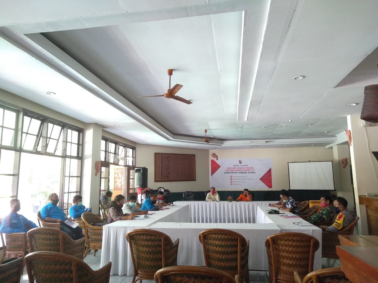 Torayapos.com-Toraja Utara,– Satgas Covid-19 Toraja Utara kembali lakukan rapat koordinasi (Rakor) evaluasi  kegiatan terhadap penanganan Covid-19 di Toraja Utara, Kamis (30/4) di Kantor Bupati Toraja Utara (eks Hotel Marante).