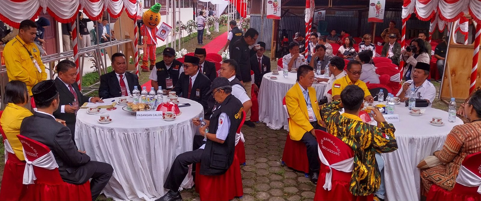 Kedatangan kedua pasangan calon bupati dan wakil bupati tersebut diantar langsung oleh kader partai pengusung yakni Golkar dan Perindo bersama tim pendukung, dan disambut oleh komisioner KPU Kabupaten Toraja Utara.