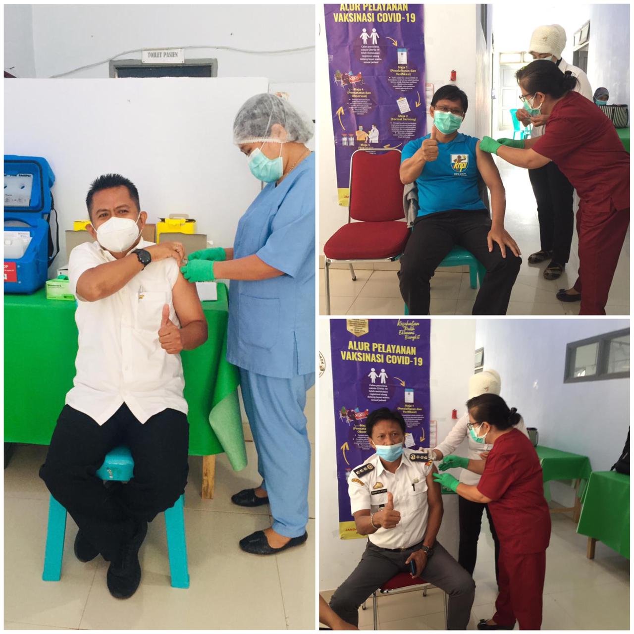 Juru Bicara (Jubir) Gugus Tugas Percepatan Penanganan Covid-19, Anugrah Y Rundupadang melakukan vaksinisasi (suntik vaksin sinovac) bersama Camat Rantepao Rony Kalasuso, Ketua KNPI Toraja Utara, Belo Tarran dan Kadis Pendidikan Drs Yermia Marewa, M.Si di ruang Puskesmas Rantepao, Rabu (10/2/2021).