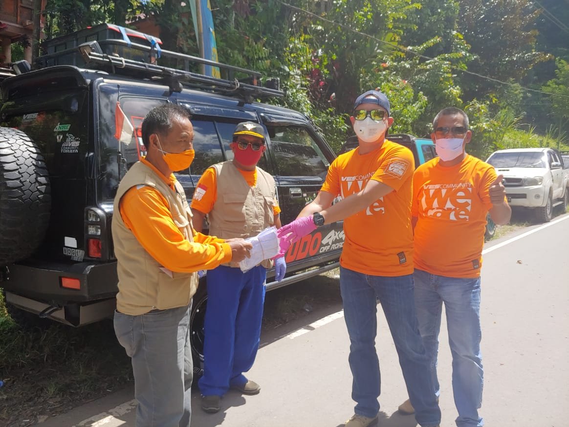 Torayapos.com-Toraja Utara- Komunitas Vitara, Escudo, Sidekick (VES) Chapter Toraja turun ke perbatasan Palopo-Toraja di Kecamatan Nanggala bagi-bagi masker bagi masyarakat yang melintas masuk di perbatasan Toraja, Kamis 16 april 2020.