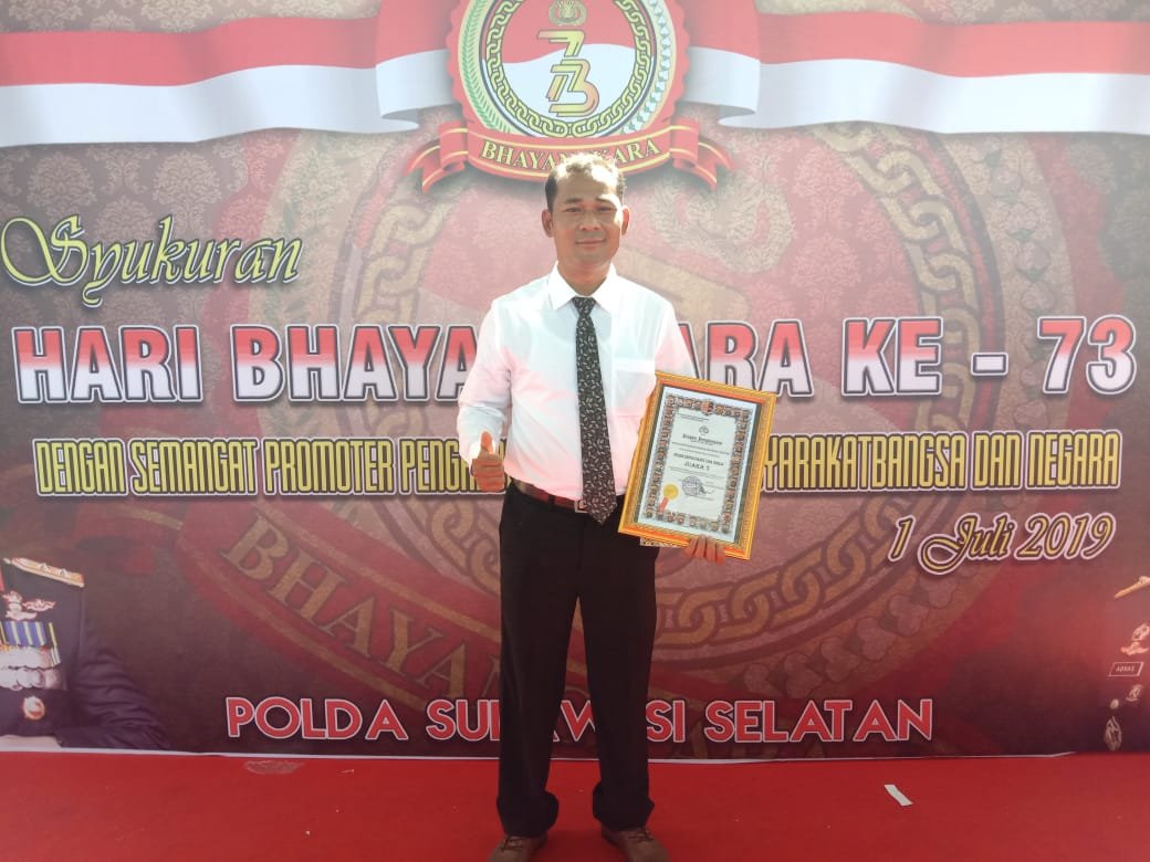 Piagam itu diterima oleh PS. Kanit Intelkam Polsek Sopai, Polres Tana Toraja Bripka Yermia Lolopayung yang diserahkan langsung Wakapolda Sulsel Brigjen Pol. Drs. Adnas, M.Si dengan disaksikan Kapolda Sulsel Irjen Pol Drs. Hamidin.